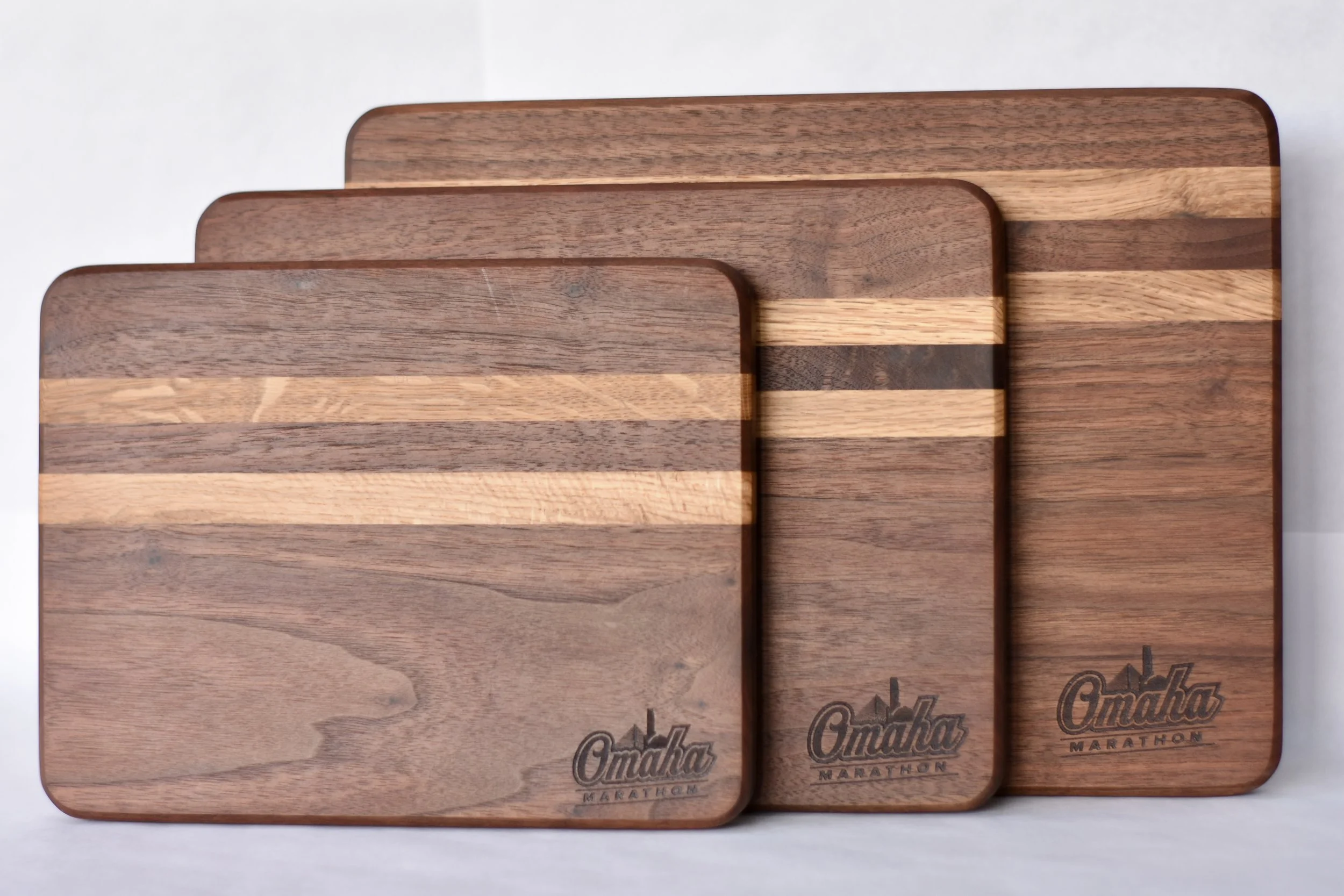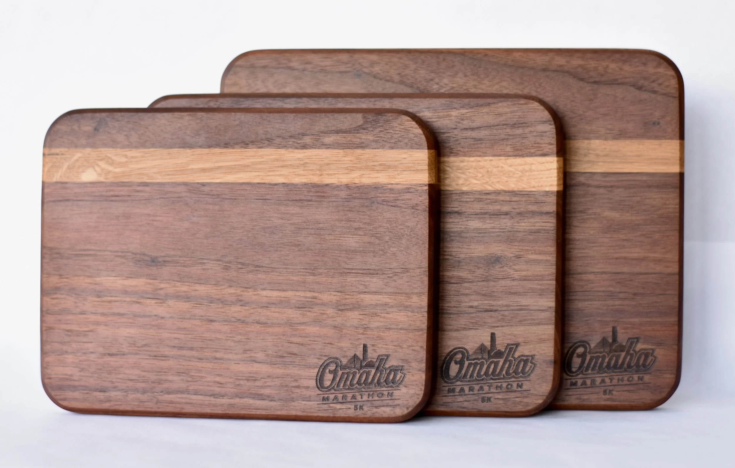 We had the pleasure of creating the Awards for the 2025 Omaha Marathon, Half Marathon, and 5K. 1st, 2nd, 3rd, and Masters men and women racers will receive a custom made cutting board made from Black Walnut with White Oak stripes.